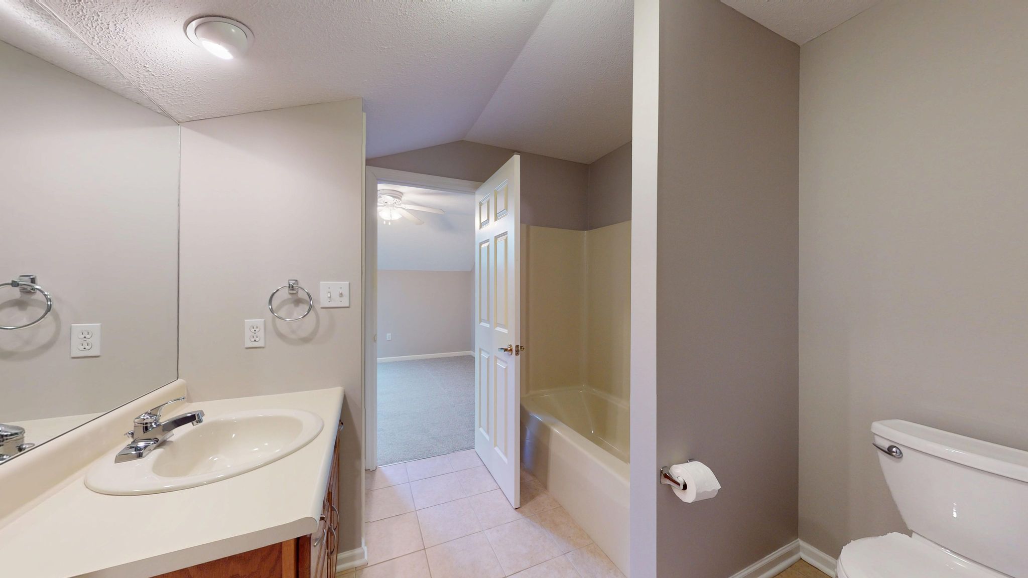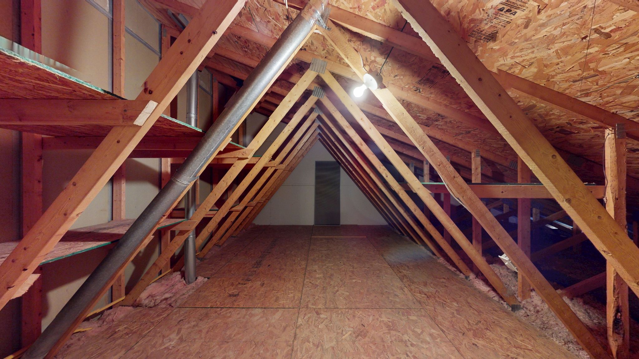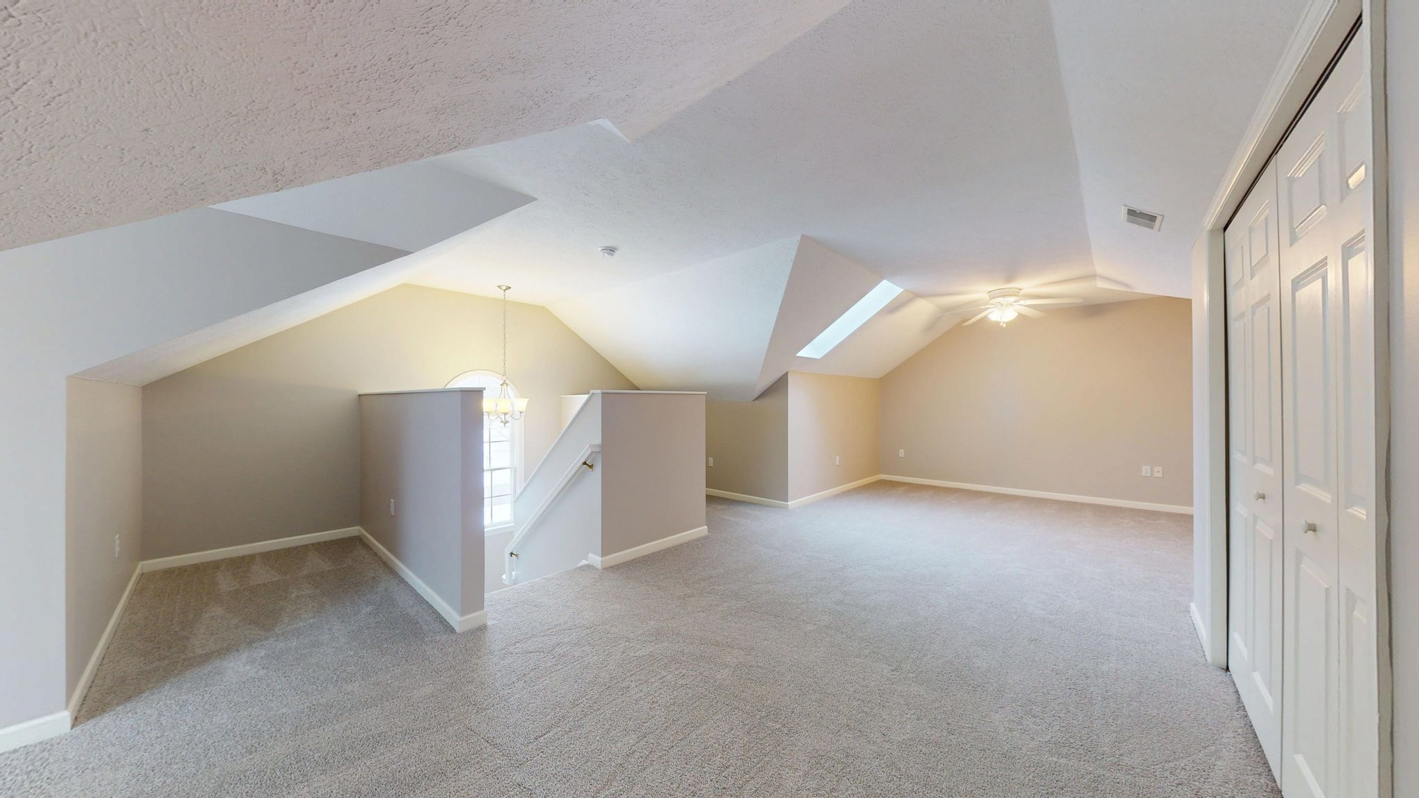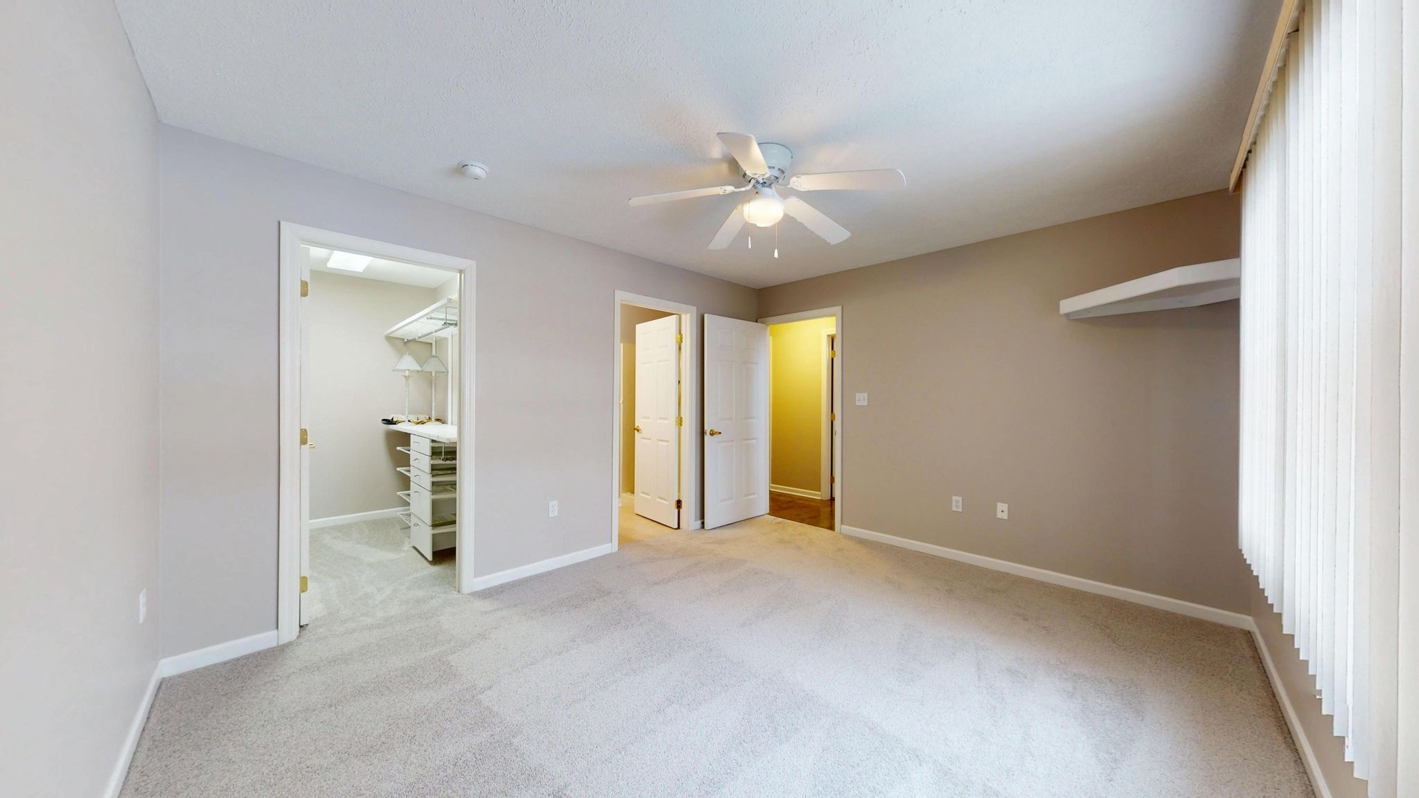 The main-level primary suite offers a peaceful retreat with generous proportions, abundant natural light, and a custom-designed Elfa walk-in closet system. The en-suite bath includes a large vanity, step-in shower, and linen storage for added convenience. A secondary bedroom on the main level provides flexibility for guests, a home office, or a hobby room. Upstairs, vaulted ceilings and a skylight create a bright, versatile loft or third bedroom space, accompanied by a full bath—ideal for extended guests or a private work-from-home environment. A spacious walk-in attic with full standing room provides exceptional storage rarely found in similar homes.