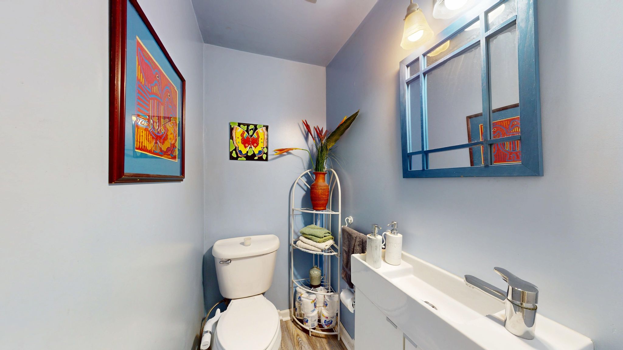 Inside, warm hardwood flooring and natural light create an easy, welcoming atmosphere. The living room centers around a large picture window and flows seamlessly into the dining area, creating an open feel ideal for everyday living and entertaining. The kitchen was refreshed in 2022 with quartz countertops, glass tile backsplash, new appliances, and luxury vinyl tile flooring, delivering modern style with durable, low-maintenance finishes. A main-level powder room adds flexibility for guests.