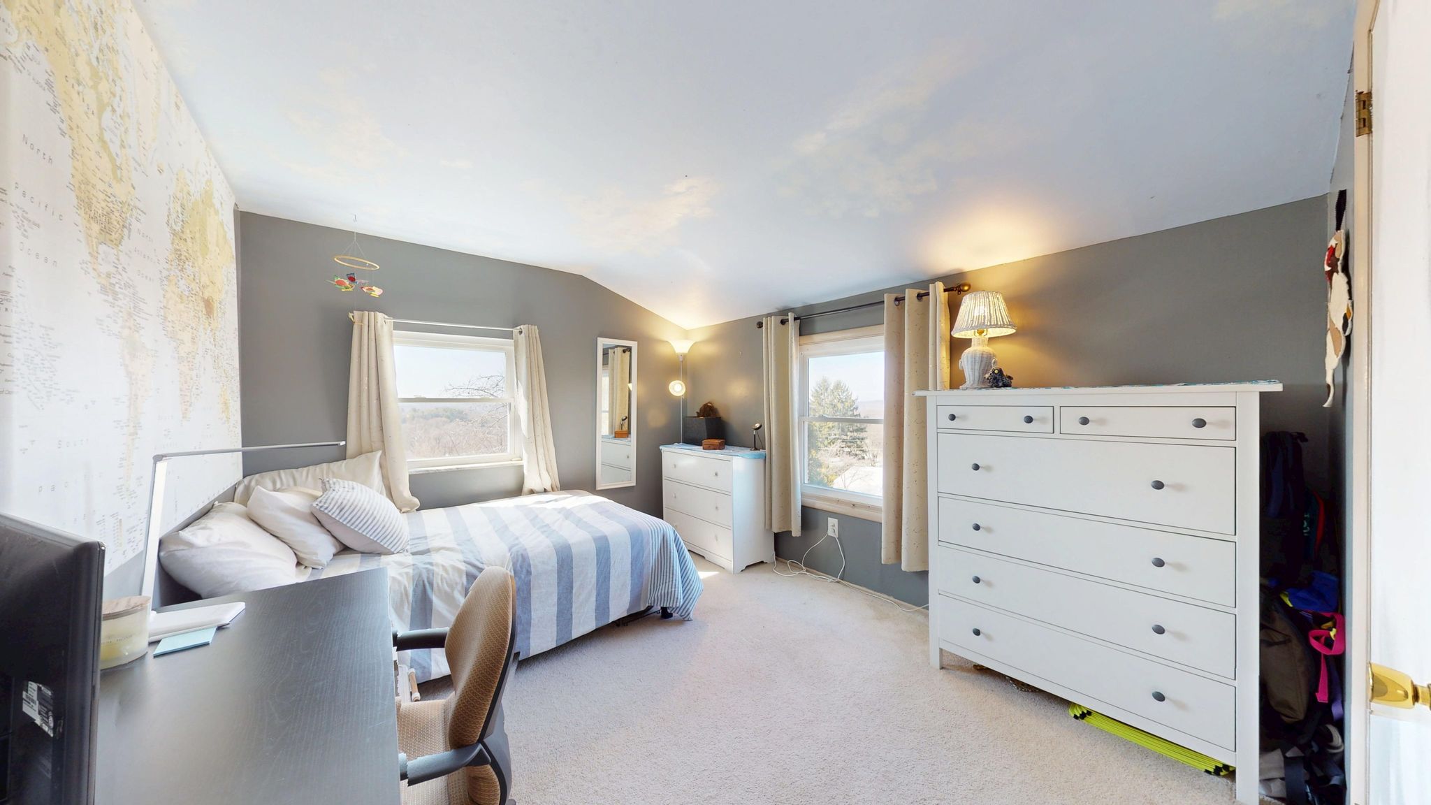 Upstairs, three comfortable bedrooms offer natural light, ceiling fans, and neutral finishes. The full bath features updated tile flooring. Major mechanical updates provide added peace of mind, including a new roof, siding, windows, furnace, air conditioning, and electrical panel.